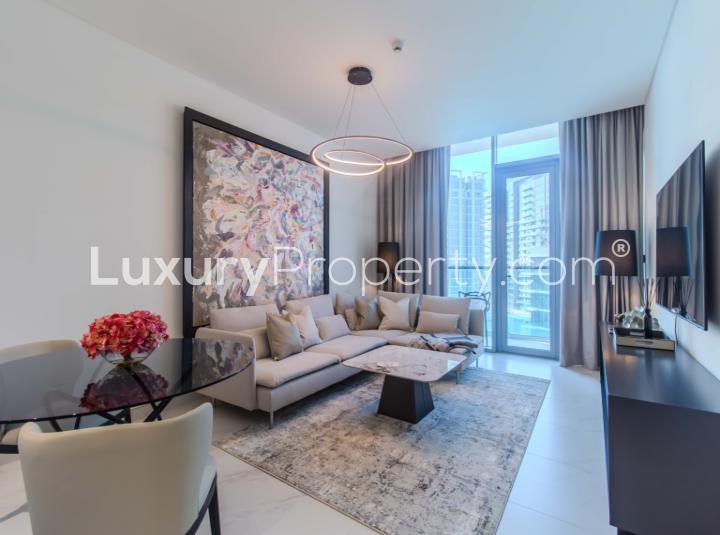 Sometimes you walk inside and just pause for a second because a place feels peaceful right from the start. That happened to me with this one bedroom apartment in District One at Residences 5 in Mohammed Bin Rashid City. Sunlight spills right into the main living space which gives it a soft warm feel and honestly you start picturing yourself curled up with coffee by those big windows. It almost does not feel like you are in the city but you can spot the skyline in the distance which is always a nice reminder that Downtown Dubai is not far off at all.