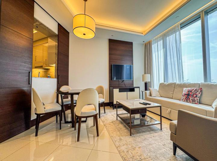 The living area is hard to leave, though. Those floor to ceiling windows are not just for show. I found myself just standing there, taking in all of Downtown Dubai. You get the city's energy, but also this peaceful feeling from being up high enough that the world feels quiet. The furniture is tasteful and actually comfortable, so you will not mind sitting with a book or spending a Sunday on the sofa. Even when you have guests, everyone still has enough space to just be themselves.