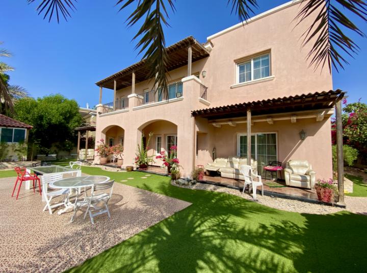 Sometimes you walk into a place and everything just feels sort of laid back but also just right. That's honestly what I got stepping into this six bedroom villa in Mirador at Arabian Ranches. Even before I reached the front door I noticed the landscaping looked cared for by someone who actually enjoys spending a bit of time outdoors. Not every home gets that kind of attention. Maybe it's the way the golf course catches your eye every time you look through the windows both from the garden and upstairs. Or maybe it's just knowing you can park the car in the two car garage and not have to worry about sun-warmed seats in the summer.