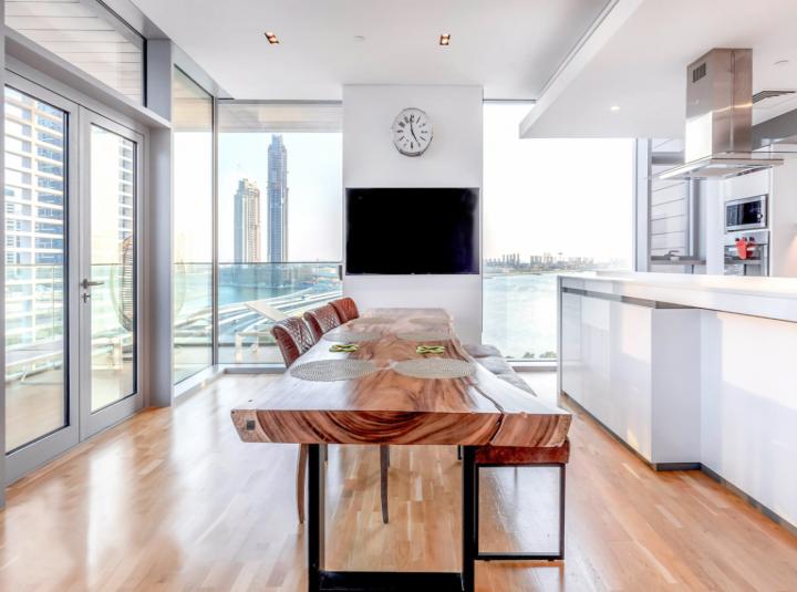The kitchen is proper. Not just a glossy show kitchen, but somewhere that seems like you would cook real meals, maybe breakfast with the sea right there. Storage is everywhere you look, tucked away but also easy to get to if you are the kind of person who keeps a lot of small gadgets or extra glasses. I met someone who lives in the building and they said the bills are all included for this apartment which honestly takes a bit of the hassle out of renting in Dubai. It just feels easy.
