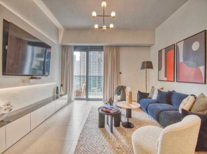 Some places just know how to pull you in right away. Stepping inside this three bedroom apartment in Act Towers, Downtown Dubai, I found myself actually pressing pause for a second just to look around. The light really gets your attention first. Sun comes pouring in through these huge windows and the city almost feels like part of the living room. You can stand there for a while with a coffee and watch the fountains play or just stare up at the Burj Khalifa sparkling right outside