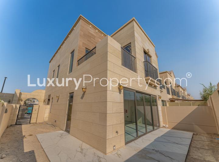 Some properties just have a way of making you relax the moment you step through the door. This 3 bedroom townhouse for rent at Jasmine Lane in Jumeirah Golf Estates honestly does that. I think it is partly the way sunlight plays across the floor as soon as you enter or maybe it is because you know the lagoon is barely a couple minutes away on foot. I have been here in the middle of the morning when everything feels peaceful and even in the evening when people from next door wave hello as they walk past with their dogs.