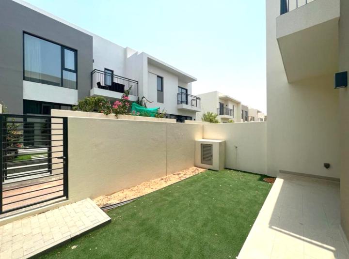 You get three proper bedrooms here. Each one is a real bedroom and not some squeezed in afterthought. I have seen lots of places where the guest room is almost pointless but not here. The windows are big and you get actual daylight every morning even those rare quiet days in Dubai when the sky is a little grey. The master looks out onto some garden greenery that probably makes waking up early a bit less painful. I guess if you work from home you can even use the third bedroom as an office and it would not feel cramped. There is about fifteen hundred square feet inside so even if it sounds smaller than some other villas the way it is laid out makes it feel much larger. I have watched people fit real dining tables in here and still have space for sofas and a few friends to drop by.