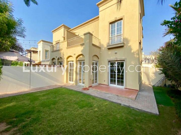One of the best things about this particular villa is that it is single row so there is no villa right behind you. The view toward the lake is wide open and you keep a nice bit of privacy plus it is surprisingly quiet even on weekends. The owner has looked after the property well and updated the floors and kitchen so you do not get any tired or old finishes. The plot area is generous with almost three thousand eight hundred fifty square feet. That actually gives you a proper garden where you can see kids playing or maybe just have space to relax outside. I have noticed in the evenings you will often see families strolling or kids racing by on bikes around the lakes which always makes you feel part of a real community.