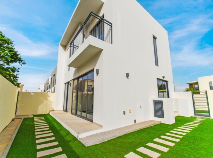 Some places just feel like home right away and I think this four bedroom townhouse in Camelia at Arabian Ranches 2 really has that vibe. The first time I walked up, I could hear the sound of birds before I even got to the door. There is something calming about a corner plot like this, with a bit more space between you and the next house and the garden kind of wraps around so every window gives you a bit of greenery or bright sky.