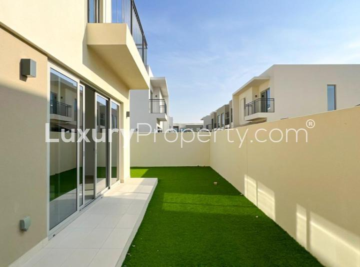 You get the benefit here of a single row spot too, which is basically that extra breathing room and privacy most townhouses do not get. The landscaping everywhere is well kept. Sometimes I notice how much that adds to a place's vibe. And parking is never a headache, which, if you know Dubai, you know that makes a genuine difference.