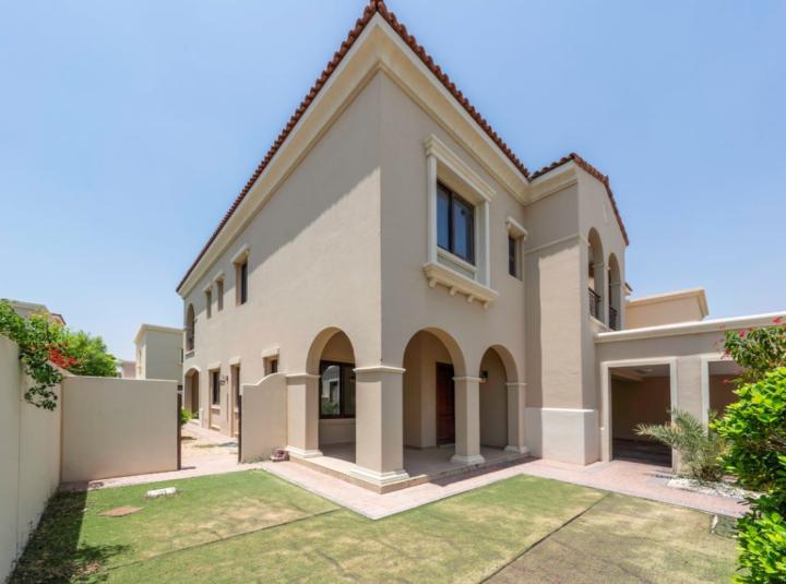 Some homes just have that feeling where you walk in and it hangs in the air. This four bedroom townhouse in Lila, Arabian Ranches 2, really does that for me. Actually the first time I stepped inside I just paused at the entrance. It is bright even on those cloudy mornings and you can hear quiet sounds from outside because the garden sits kind of tucked away from the road. You walk straight into a foyer that does not rush you at all. It just lets you arrive. Off to the right is one of the living spaces where sunlight finds its way across the whole room in the afternoon and everything feels softer. I could honestly see someone sitting there with a coffee watching the garden wake up in the early hours.