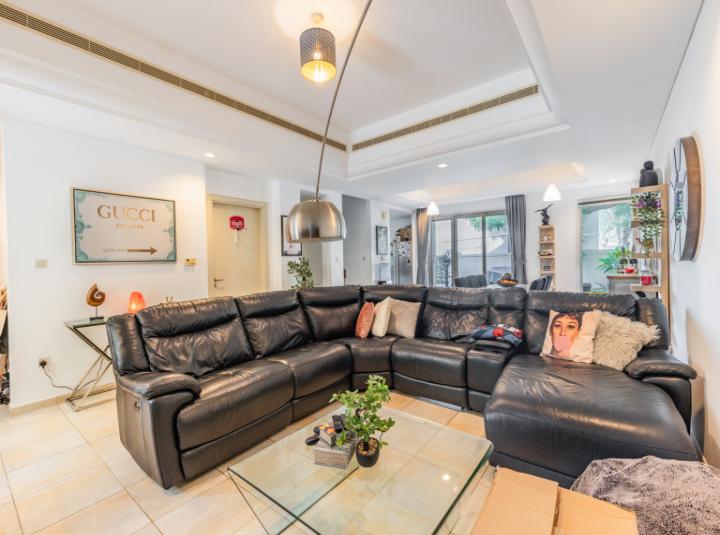 You walk in and it is just easy. This townhouse is spread across three levels so you are never short of a corner to call your own. The built up area is pretty generous for Dubai. You notice it most in the living room where sunlight just starts pouring in through big windows every morning. Sometimes these kinds of places look big for photos but once you are inside the feeling is different. Here it actually keeps that open breath as you move through the rooms. The bedrooms upstairs are no exception. I found them genuinely peaceful. Especially the master. You have this walk out terrace that actually looks over your own garden rather than another row of buildings. Mornings out there with a cup of coffee feel sort of stolen from everyone else's rush hour. Some evenings you hear kids playing on bikes or the neighbors chatting over the fence and it just gives the day a softer edge.