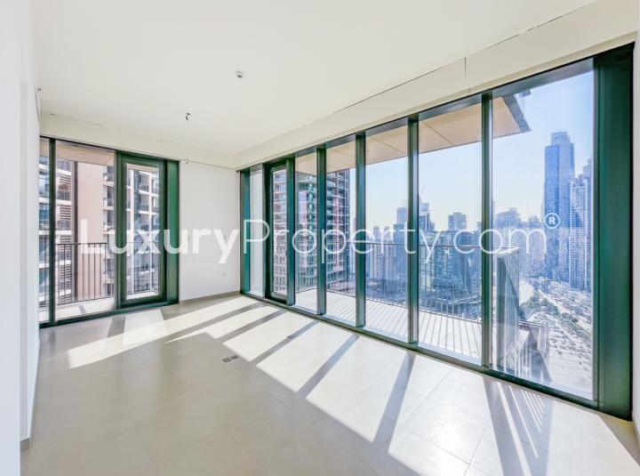 Some places just have that feeling the moment you step in. I felt it right away when I visited this two bedroom apartment for rent at Blvd Heights in Downtown Dubai. Maybe it was the way the afternoon sun touched the living room floor or just noticing how quiet it got up on a high floor even though you're right in the middle of downtown. It felt easy somehow. I found myself hanging by the window just taking in that wide city skyline view and yes, you can actually see the blue stretch of the sea too. People talk about views all the time but here it's not just talk. You really get those big open sights especially from the two balconies.