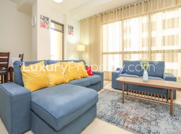 Some places just make you exhale a little when you open the door. This two bedroom apartment in Amwaj at Jumeirah Beach Residence really gives you that feeling. First thing that hits you is the brightness. Even on the days when the clouds hang around a bit, it just feels so open in here. The living and dining area are basically made for slowing down after work or stretching out your weekend. I actually stood by the windows for a while and watched the city wake up below. The view of Dubai Marina is right there, through floor to ceiling windows that honestly do most of the decorating work for you.