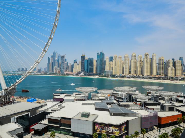 Some homes just do not rush you. Walking into this two bedroom apartment at Bluewaters Residences I found myself by the window before I even realized it just sort of pulled me in with that wide open view straight to the Arabian Gulf. You also get a perfect look at Ain Dubai with the Ferris wheel out there feeling almost close enough to touch on certain days. It is the kind of spot where sunsets actually stop you for a minute. I even caught myself thinking about how easy mornings might feel here coffee in hand door open a little bit that salt air coming off the water before all the buzz of Bluewaters Island wakes up.