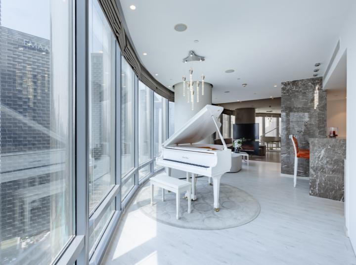 Some homes just have a certain calm when you walk in and this two bedroom apartment right inside the Burj Khalifa does that. The first time I came in I just had to pause for a minute because there is this huge window looking out toward Downtown Dubai and you can actually see all the little life happening down below. People always say the Burj Khalifa is just about the height or the fame but honestly when you are actually inside one of these homes it is more peaceful than you'd expect. Everything just feels easy here and quiet even though you are in the middle of everything.