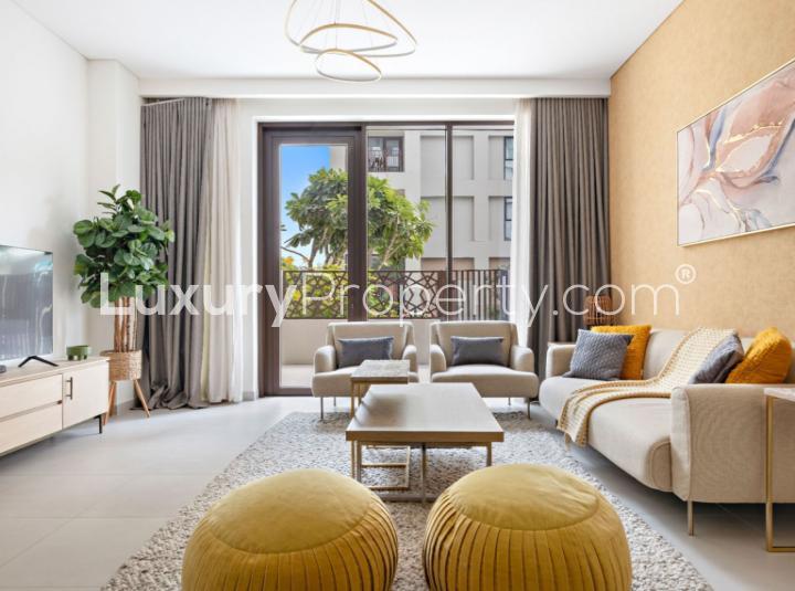 This spot really sits at the softer edge of Dubai Creek Harbour. Everything you need is nearby but you are never in the middle of tourist crowds or traffic. Downtown Dubai is only a short drive if you want to change things up or meet friends but sometimes you will find everything you need right here at home. Coffee is never far you have little places to eat that locals actually go to and even yoga classes in the park if that is your kind of thing.