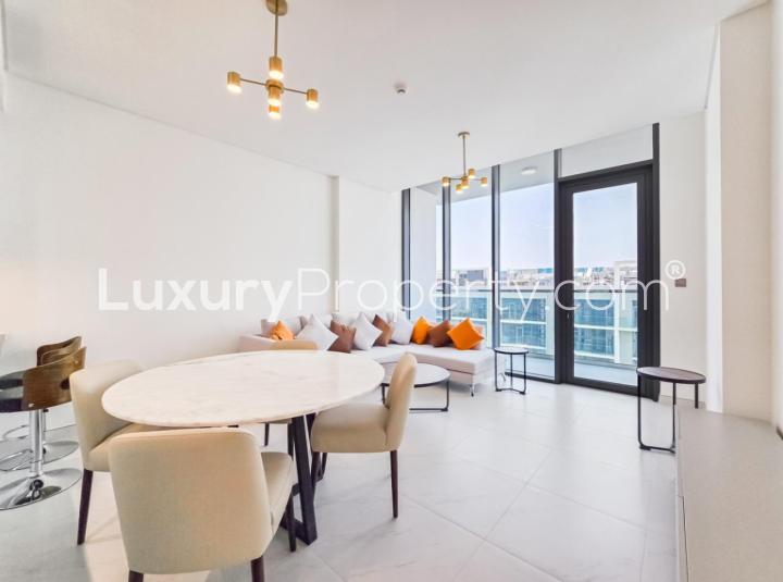 So here's what you get. The apartment sits in Residences 13, which is right in the heart of the District One community, and if you know the area, you know it's all about that balanced Dubai life. You're close to Downtown Dubai and Business Bay, but inside the gates, it's much more relaxed. Some evenings you see families walking down to the lagoon or people taking their morning jog along the paths. You can almost hear the water from the balcony when the city is quiet. The views really are full lagoon, not just a peek at the water, and you'll probably lose track of time watching the birds skating across it now and then.