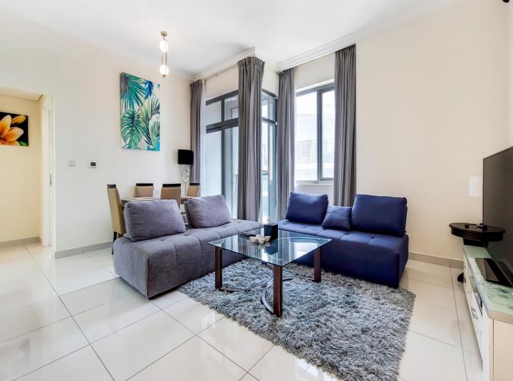 Some places just give you a slight pause when you walk in and this two bedroom apartment in Executive Bay at Business Bay completely does that. It is not just the way the doors open up to a real sense of space although you'll notice how light comes easily through the full windows and sort of mixes right into the living room. The set up feels simple and a bit homey which honestly surprised me because sometimes furnished places can feel a bit stiff but not here. The sofa is big and actually seems like the spot you'd hang out at the end of a long day or maybe just watch football with friends. You get a dining table that is more than just decoration so if you like to eat at home or sometimes work on your laptop while grabbing a coffee it is one of those things that makes life feel simple.