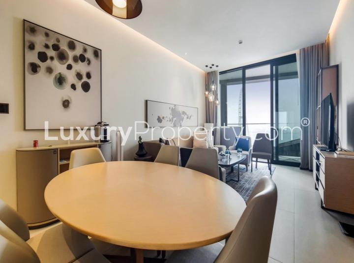 What I love about The Address Jumeirah Resort and Spa is you get this resort vibe but still feel at home. There is a private beach just for residents which means on your days off you can really unplug. Sometimes in the evenings you will see people walking barefoot with a coffee just watching the sunset. The ground level has two pools one for families and one just for adults so you have both energy and quiet depending on your mood. And for fitness people, the gym is all the way up on the seventy fifth floor. You want a unique workout, that place almost makes you forget you are exercising because the views are so distracting. Sometimes you can even spot the Ain Dubai wheel in the distance. Plus there are spa facilities right in the building which is perfect after a long week.