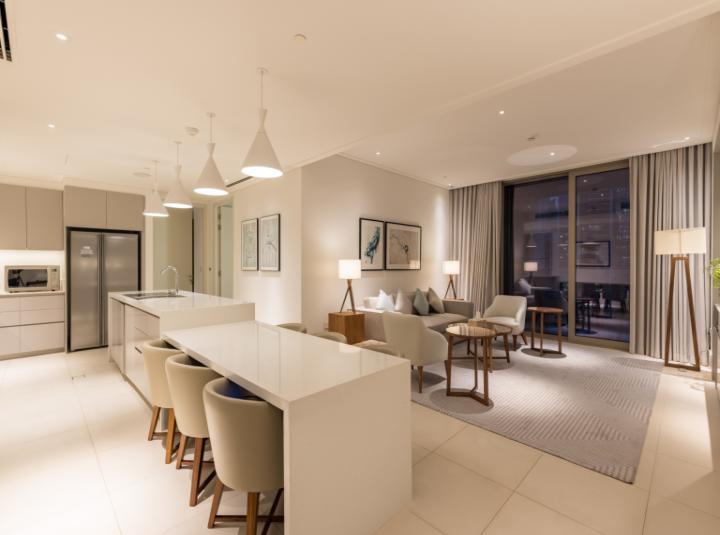 Some homes just settle you the moment you walk through the door. That happened for me in this two bedroom apartment at Vida Residence Downtown, right in the heart of Downtown Dubai. I took a few steps inside and honestly just wanted to put my bag down and stay a bit. It is probably the mix of bright space and the easy way everything flows together. Even though it is unfurnished, there is this feeling that you could make it your own so easily. The open plan living and dining area has these full length windows that really let in the light. If you stand there in the afternoon, you can see Downtown Dubai just flicker with life outside. It gives you a bit of a buzz but at the same time it is surprisingly peaceful up here.