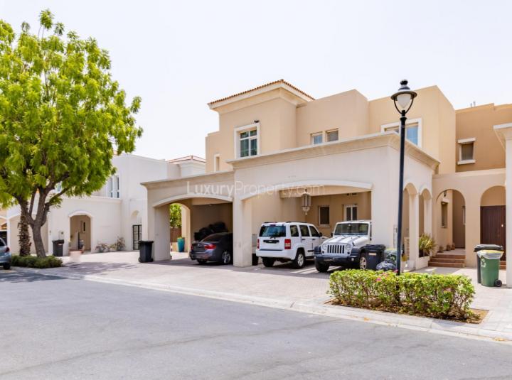 Al Reem is one of those parts of Arabian Ranches where neighbors wave when you walk by and kids play out together in the quieter streets. There is a community here that makes even everyday routines feel a bit warmer. You spot families walking or kids biking in the evenings. The shops you need are genuinely close. There is always a café or little market within reach so you do not have to plan a big grocery run for every little thing. Just a couple of minutes from the villa you have schools, sports courts, a skate park, and quick access to medical care too so it is an easy place to settle for real life not just a holiday.