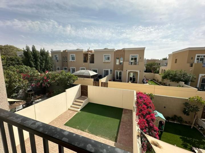 The neighborhood here in Al Reem has a good rhythm. You see people walking dogs in the evening and sometimes you catch the sound of a tennis match from the nearby courts. There are parks through the area and the swimming pools always have that blue inviting look even on warm days. Kids ride bikes around without anyone worrying much. Supermarkets and coffee shops are just a quick drive or even a walk if you like a bit of fresh air. Schools are nearby with quick drop offs so mornings do not feel rushed. Arabian Ranches never gets too loud but you are not cut off from the city. Everything just works without feeling complicated.