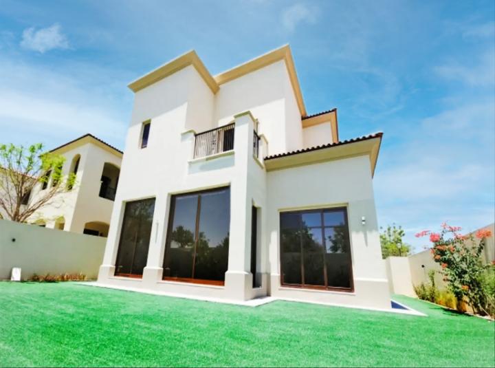 Some homes almost slow your day down as soon as you walk in. That is honestly the feeling I get every time I visit this five bedroom villa tucked into Aseel at Arabian Ranches. It is waiting for someone right now and when it is just me inside it feels so calm which is something you do not always expect in Dubai. The ceilings are high enough that sometimes you forget how big the rooms are and sunlight absolutely fills every corner through the big windows so even if you wake up before the sun or come home late you still get that soft golden light. Walking from the entry right through the living and dining space you notice you are not boxed in at all. There is this open plan layout that just makes moving around simple and actually feels good for families or even if you just have a lot of people over on weekends. The built up area is around three thousand six hundred eighty square feet which means you are never squeezing past furniture or feeling cramped.
