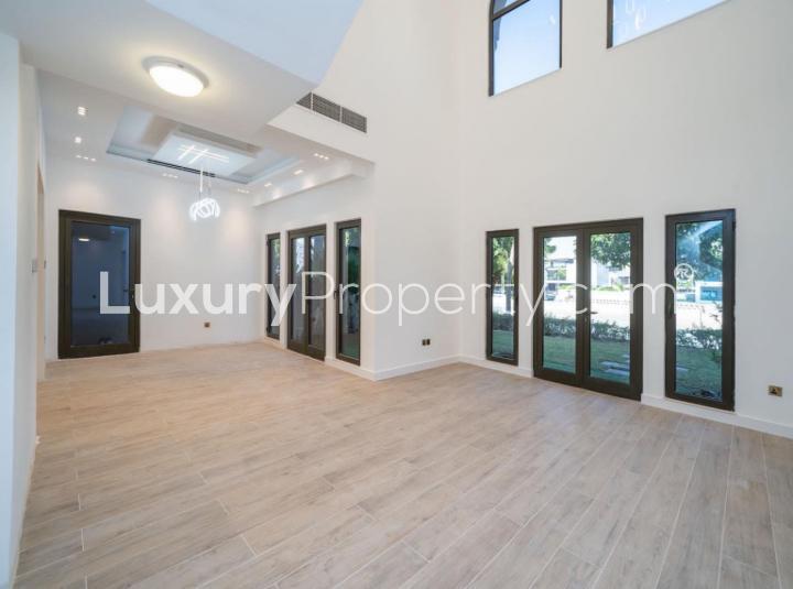 Some homes just make you stop for a second when you step through the door. This fully upgraded four bedroom villa at Canal Cove in Palm Jumeirah honestly gave me that feeling from the start. You get this sense of calm as soon as you walk in. There is something about those older Palm Jumeirah villas that is just different. It is not the flashiest place you will ever see but in a really good way. You notice the light coming through the oversized windows across the front entrance. I stood in the hallway for a bit just watching the garden move outside. It is easy to forget your phone here because you get caught up in how peaceful it feels. Life in Dubai is always busy but in this villa you will find yourself slowing down more often than you expect.