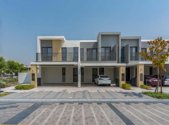 Some homes really do have that first day feeling. This brand new four bedroom villa in Elan at Tilal Al Ghaf gives you exactly that. When I stepped inside for the first time I actually paused at the door. Everything just felt fresh and open. There is this kind of soft daylight that sits in the living area. I found myself just standing by the window and watching the sunlight move across the creamy floors for a while. It feels inviting. Not too formal or staged. You can probably picture yourself having a quiet coffee there on a weekend morning or maybe just lounging with the family after work. The space flows right into the dining area so you are not closed off from the rest of the home. The colors make it all feel bigger and very calm.