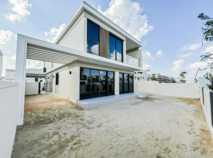 Honestly this villa feels made for someone who wants quiet and privacy but still likes having neighbours around when they want them. It is in Tilal Al Ghaf which is getting known for its green spaces and family feel. I know there are a lot of modern villas in Dubai but this one in Harmony just feels good. There's something about the way the light moves through the rooms and how the air flows. And the best thing is you could just move in and start living right away since everything is brand new and never used.
