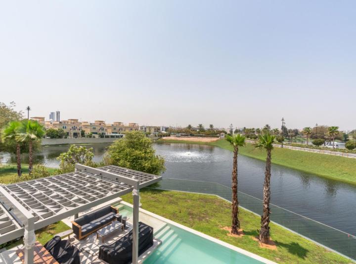 Right away it hits you how open everything is. The lake views outside are kind of impossible to miss. I just stood there for a bit by the window actually and watched the water. It is quite peaceful which is not always easy to find in Dubai. At over eleven thousand square feet of plot, the villa itself is large but the way the space is used means it never feels too big or echoey. You feel connected to the outdoors wherever you are. Sometimes you can hear birds from the garden or you look outside and see the sky just turning pink in the late afternoon. The private pool calls out for a swim pretty much any time of day and honestly, there is plenty of space for everyone to find their own little spot outside. You've got a sunken fire pit area tucked away and it feels like the sort of place where conversations just go a bit deeper. The landscaping is really well thought out too. There is privacy but you still get these beautiful glimpses of the lake and that really does make evenings especially nice.