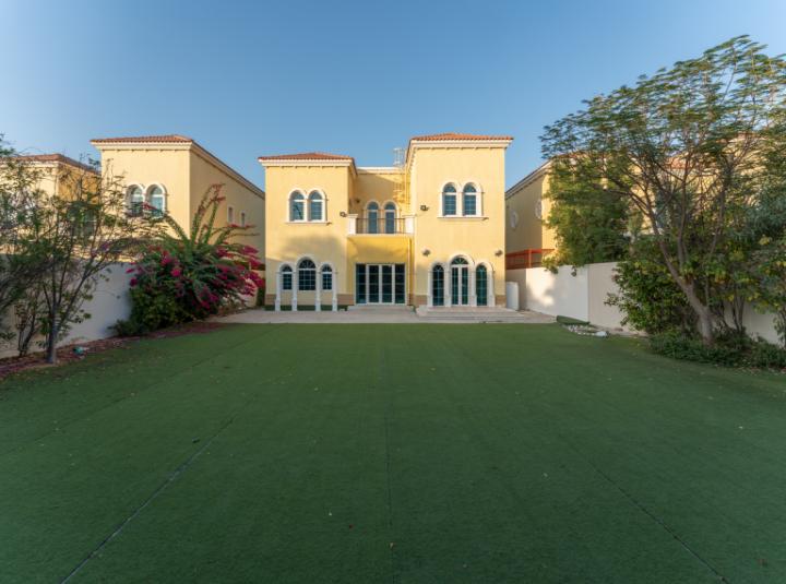 Honestly the green jumps out at you first, especially right now when the weather still has that nice in between feel before the big Dubai heat comes. The villa sits on a large plot so you really notice the lawn. Play football, let kids burn off some energy, even put in your own little vegetable patch if you want to try something new. There is room for all that. You see birthday balloons floating on the weekends sometimes and a gentle energy that somehow makes even laundry day feel a little lighter. Space outdoors is one of the hidden joys in Jumeirah Park and this villa really gives you that.