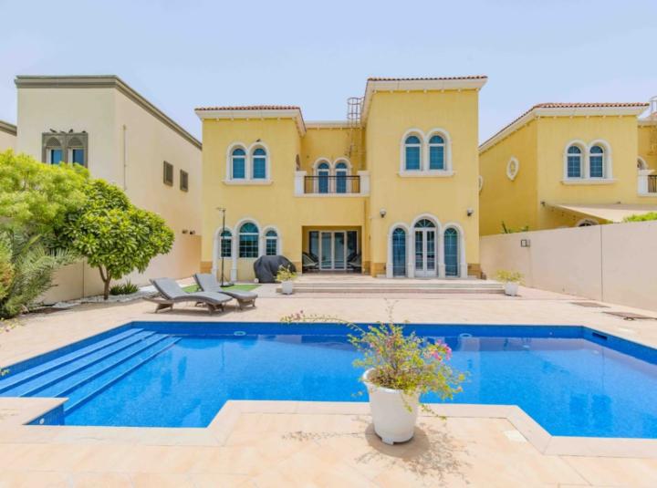 It is on a pretty generous plot actually more than seven thousand square feet so you get this rare feeling of privacy right in the middle of Dubai which is not always easy to find. There is just something about the amount of space outside and around you. You step out into the garden and you might even forget you are in the city with the way it is been landscaped. Sometimes you just hear a bird, maybe kids next door splashing in their own pool, nothing too noisy just that low hum of life around you. The private swimming pool is a real treat. I can see people spending lazy Saturday mornings by the water with coffee or reading a book while someone else grills nearby.