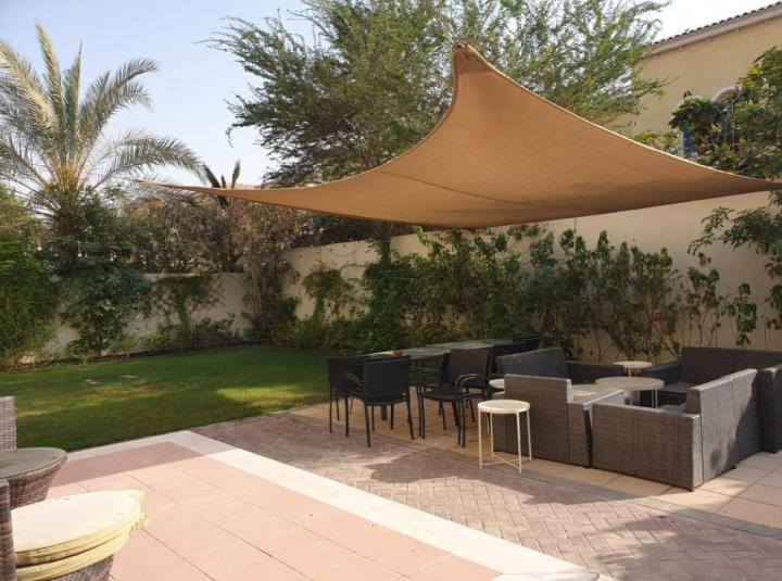 I spent a few minutes in the back garden and that is probably my favourite space here. It is landscaped but not over the top there is enough green to make it feel fresh without a ton of upkeep. If you listen closely you might hear a couple of birds out there. It is the kind of garden where you could easily have a morning coffee or stretch out on a Friday afternoon with a book and sometimes you catch some neighbours barbecuing in the distance. Evenings tend to be quiet but now and then you see kids riding bikes or families heading out for a walk. This spot in Jumeirah Park is lovely for that you are kind of tucked away from the busier parts of Dubai but close enough for everything you need. Coffee shops are never far parks are always nearby and if you need to get to a school or pop to the shops it genuinely just takes a couple of minutes. No traffic headaches here not usually anyway.