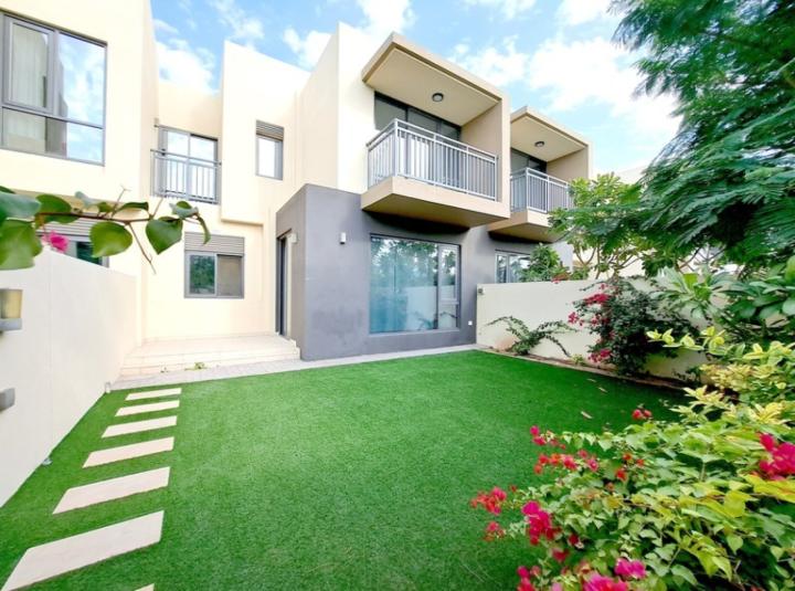 The entrance opens up wide, not tight or narrow at all. It flows straight into a living and dining space that actually feels connected. Not just a boxy layout. You will probably find yourself picturing mornings here especially with the way the daylight comes through. The garden is right outside those windows and honestly it feels almost like an extra room on its own. When I stood out there you could hear Dubai waking up softly but it is quiet enough to hear the birds too. Sitting out on the terrace with a coffee or letting kids run around the soft grass just feels easy. If you like a bit of greenery but want something low maintenance, this spot really fits. At sunset the light in the garden goes all gold and warm. Sometimes you even forget about your phone for a bit.