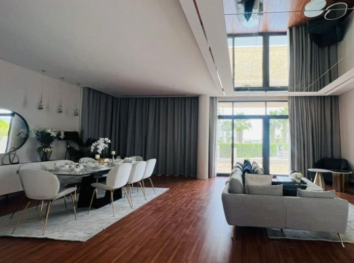 The first thing you notice about this villa is the way the living area opens up. There is a lovely sense of flow, where the living space sort of slides right into the dining area without anything breaking up the energy. It almost feels like the villa is giving people space to actually spend time togetherโno awkward corners, just these easy transitions that make even a Sunday afternoon feel special. And the windows here do more than just let in light. If you stand quietly for a minute, you can spot the green of the community outside, plus sometimes you catch this gentle breeze that just reminds you how peaceful Damac Hills can be.