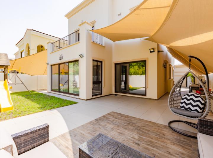 With a built up area of over four thousand six hundred square feet it just feels bigger in person. The park and community pool are right there so views go out to green treetops and sometimes you catch the sound of people laughing in the background from the pool. On weekends it is not uncommon to see families setting up picnics and kids making loops on their bikes. There is a real community feel here but it is not loud or busy which is harder to find in Dubai. The Arabian Ranches 2 Souk is close by for picking up groceries or an afternoon coffee and sometimes you run into a neighbor or two at the cafe. It is quiet enough to unwind but not empty either.