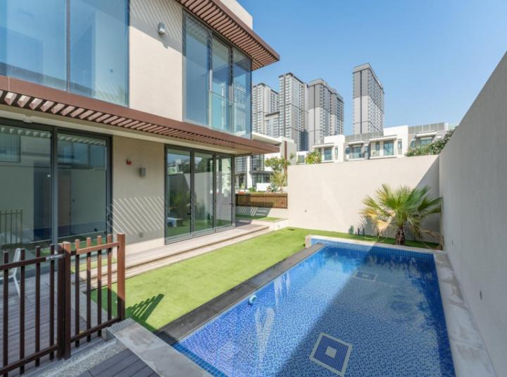 Some homes just make you take a slow breath as soon as you walk in. I got that right away stepping into this four bedroom villa in Sobha Hartland inside Mohammed Bin Rashid City. It is one of those spots where light comes through the windows just right and even when you first open the door you know it is more than a place to keep your things. Here in Sobha Hartland the trees are grown up and kids sometimes zoom around the corners on bikes. The coffee shop has regulars and it is never too busy early in the week. This particular villa actually sits on a corner so you do not feel boxed in at all. When I walked in, the main living area caught my attention first. Feels bigger than the numbers say and you get open views out over some nice landscaping. You can even look out and see one of the beautiful big mansions nearby. Not your average villa setting honestly. I stood by the window for a bit and watched the pool water moving just a little in the breeze. Yes, you get your own private pool here and it is actually the largest among the Gardenia Villas. There is plenty of space around it too so you are not just squeezed into a skinny backyard. Almost feels like its own world back there. The terrace up above is totally private and you can just imagine sitting out there with a coffee, not a soul around, letting the morning start slow. The villa itself is set up for living real life not just visiting. Kitchen is actually somewhere you probably will want to cook and it is close to the living room so smells of dinner mix in with laughter and music. Bedrooms are spread out enough for everyone's peace and honestly you just get this feeling that no one is on top of each other here. And the best thing is there is a dedicated maid's room tucked away, so even if you have help you do not lose any space or privacy in the main house. The smart home tech is here but it is not so complicated you never use it. Simple switches, security is solid, lighting feels right when the sun goes down. Vaastu fans will notice the layout has got some nice positive energy lines. If that matters to you it is already sorted. There is even elevator provision if someone in the family needs it, though you hardly notice the steps. Oh and all the amenities are just around the corner. There is the main community swimming pool when you want a change from your own. Kids have their own play area where you sometimes see squeals and little feet running on weekend afternoons. And up by the entrance is that health club everyone in the community talks about. Machines you'll actually want to use and good air inside too. Location is right in Mohammed Bin Rashid City which means you are never far from Downtown Dubai and you have real schools just minutes away. The North London Collegiate School is basically down the road so mornings do not have to be rushed. Sobha Hartland itself has a real neighborhood feel. You see the same faces each week but there are always new people moving in as well. The plot here is just over four thousand five hundred square feet so you are not squeezed at all which is a rare thing for Dubai villas especially rental ones like this. And this one is ready now. You do not have to wait on handover. It is open. Front door waiting. If you want a place in Dubai that actually feels comfortable from day one this villa in Sobha Hartland might just be what works. The only way to know if it has that right feeling for you is to come see it. If you want to ask anything or just want to take a walk through together reach out anytime. At LuxuryProperty.com we like to help your next step in Dubai feel as easy as it should.