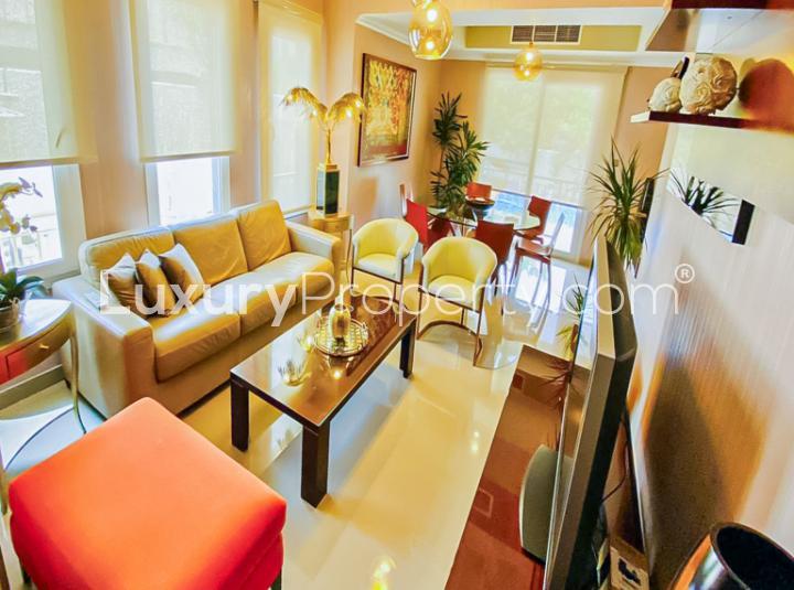 The area around the villa really does have its own charm too. You will see people out walking dogs or even jogging on those leafy paths. In the mornings, school buses drive by and parents wave to each other. By dusk, sometimes you catch kids racing their bikes or stopping at the benches nearby. There is always someone out but never in a crowded way. The community coffee shop is actually not far at all if you want a morning treat and you can always grab something quick or sit down for a proper meal close by. There are gyms and walking tracks, so most people find it easy to get a good walk in before or after work. Emirates Living as a whole is really convenient for weekends out or quick trips to the city, but you leave all the hustle behind when you get home here.